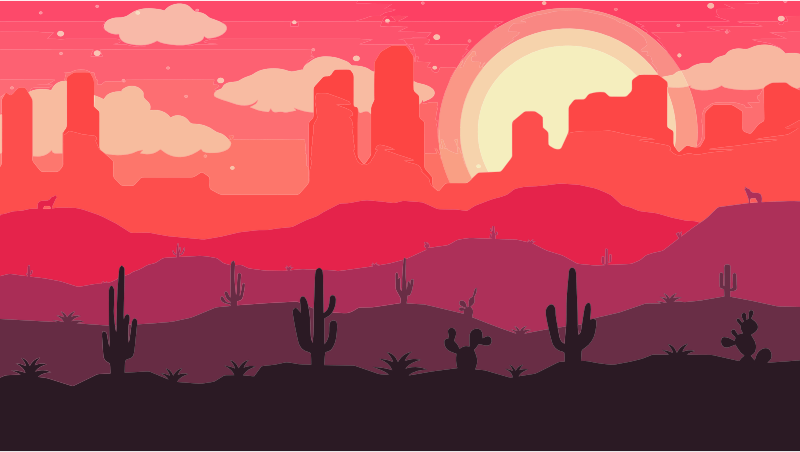 - Digital Art Landscape Nature Scenery Illustration Mountains Desert Dusk Sunset Cactus Source+Pixabay