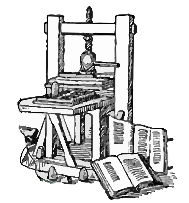 I hope user "cactus cowboy" doesn't mind my quick and dirty attempt to isolate the printing press itself from the original clipart just in case someone wants just that.