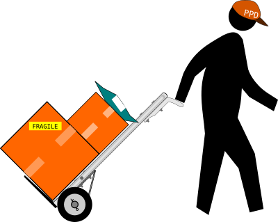 The delivery of packages with a hand truck