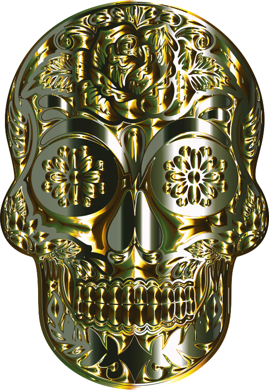 - remix+281700 Abstract Art Bones Calavera Cranium Decorative Head Human Ornate Sugar Skull Colorful Prismatic Chromatic Rainbow Psychedelic Gold Shiny Metallic 3D