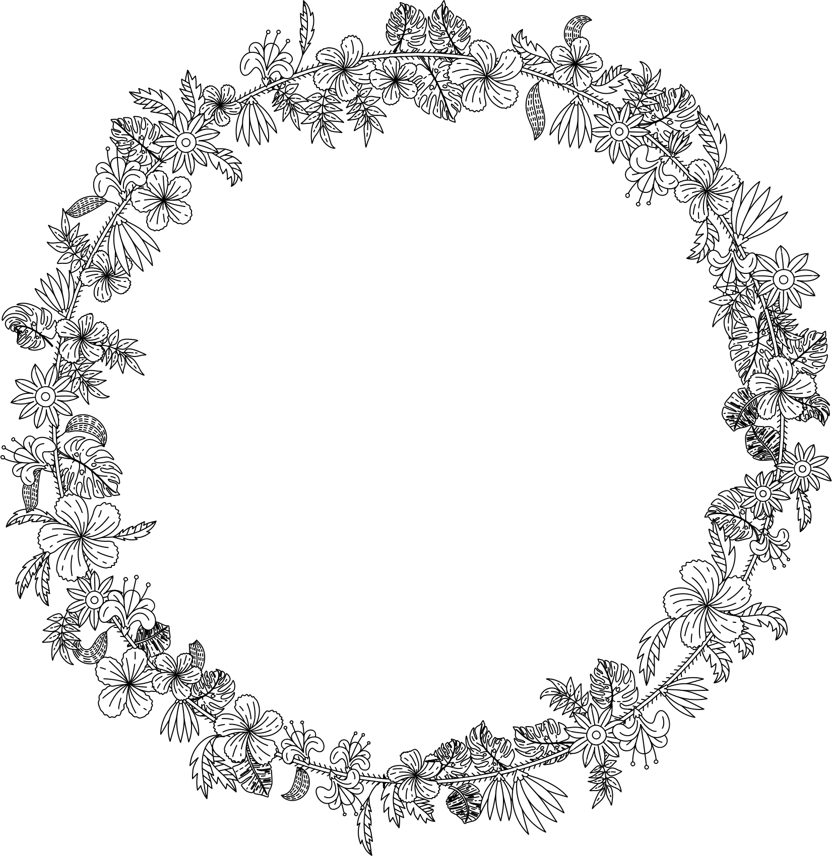 Flower wreath can be used for scrapbooking, card making with sentiments or colored in.