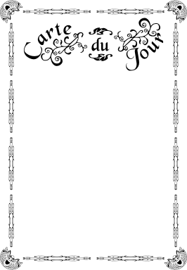 Victorian style "Carte du Jour" (Bill of Fare - Menu of the Day) menu template sized for A4 (210x297mm) paper