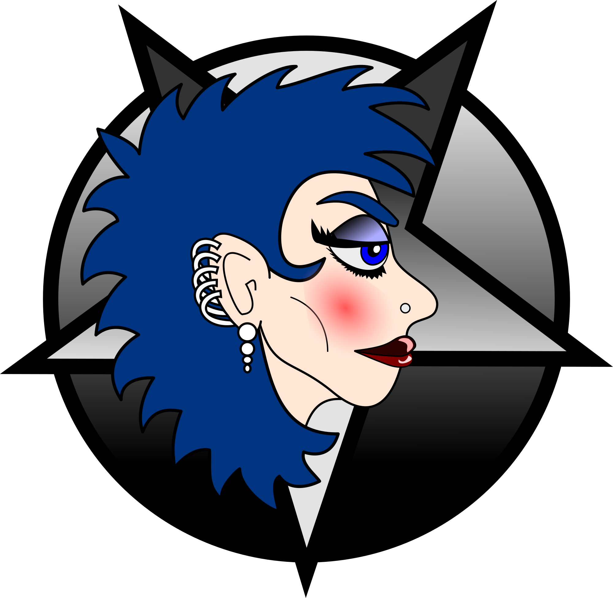A 1980s styled brunette Heavy Metal Girl in profile.