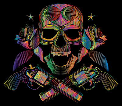Flowers And Firearms Skull Line Art Polyprismatic