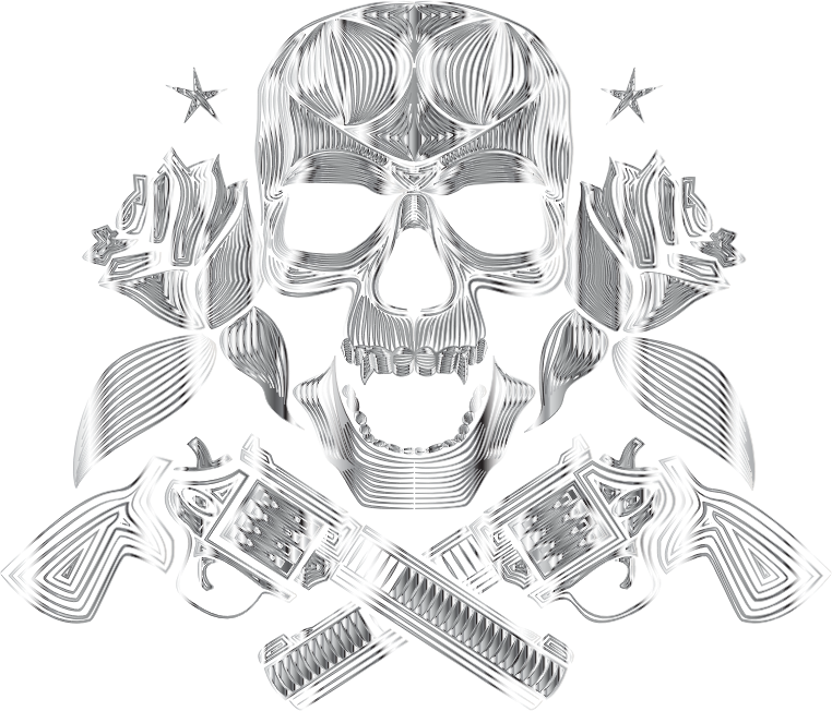 Flowers And Firearms Skull Line Art Polished Chrome No BG