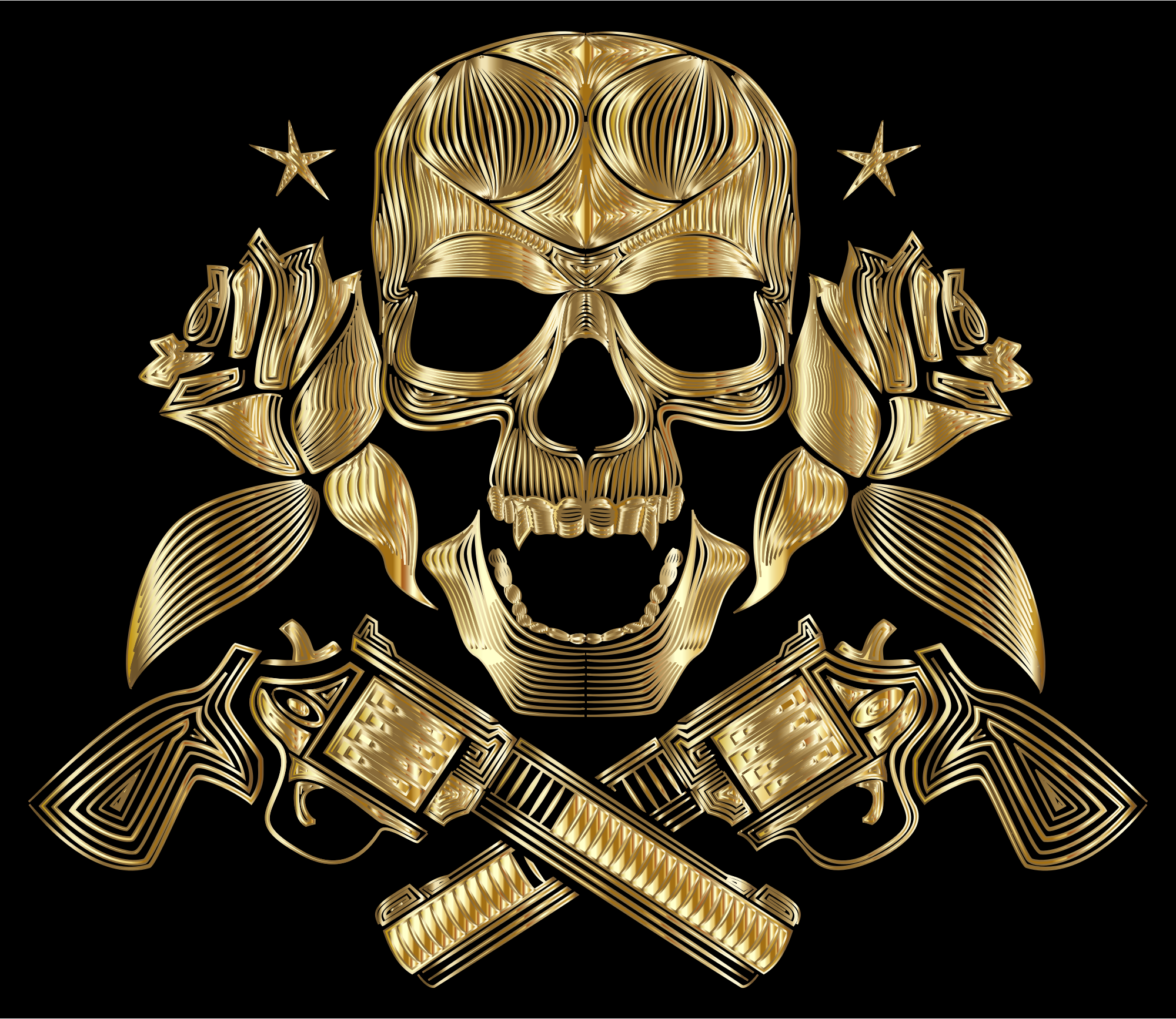 Flowers And Firearms Skull Line Art Gold
