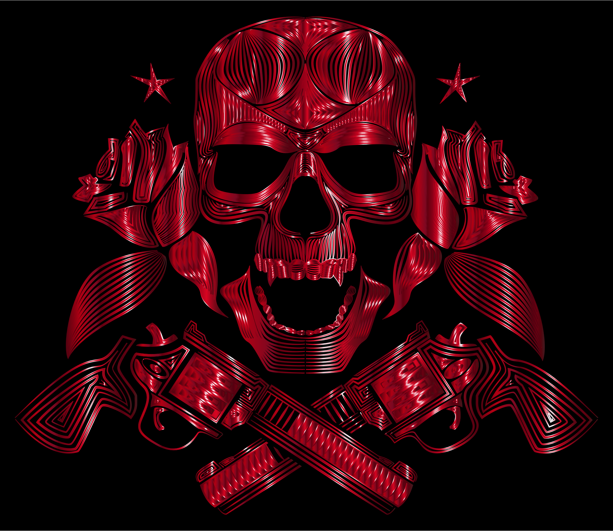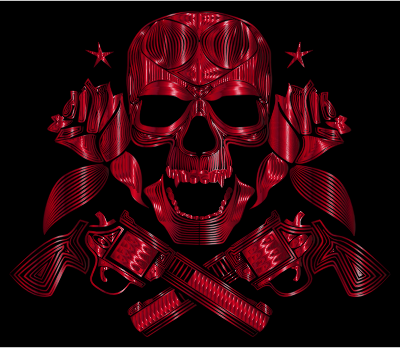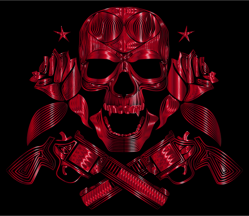 Flowers And Firearms Skull Line Art Crimson