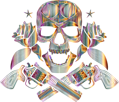 Flowers And Firearms Skull Line Art Chromatic No BG