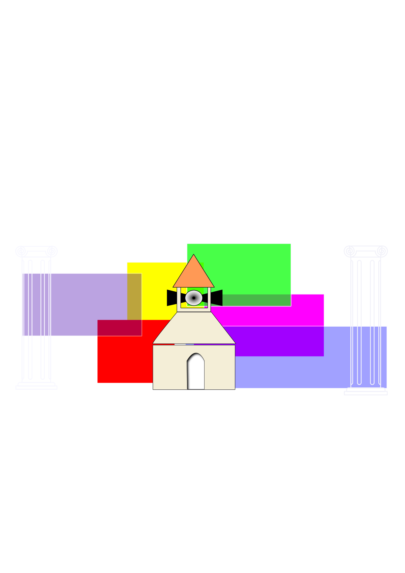 Wild crazy logo design with church. Take a special mind to come up with something abstract like this one.
