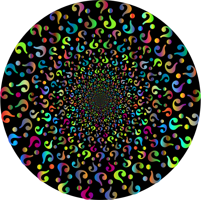 - Confusion Contemplate Knowledge Punctuation Question Mark Text Think Thought Type Typography Understand Unknown Abstract Art Vortex Maelstrom Whirlpool Cyclone Colorful Prismatic Chromatic Rainbow