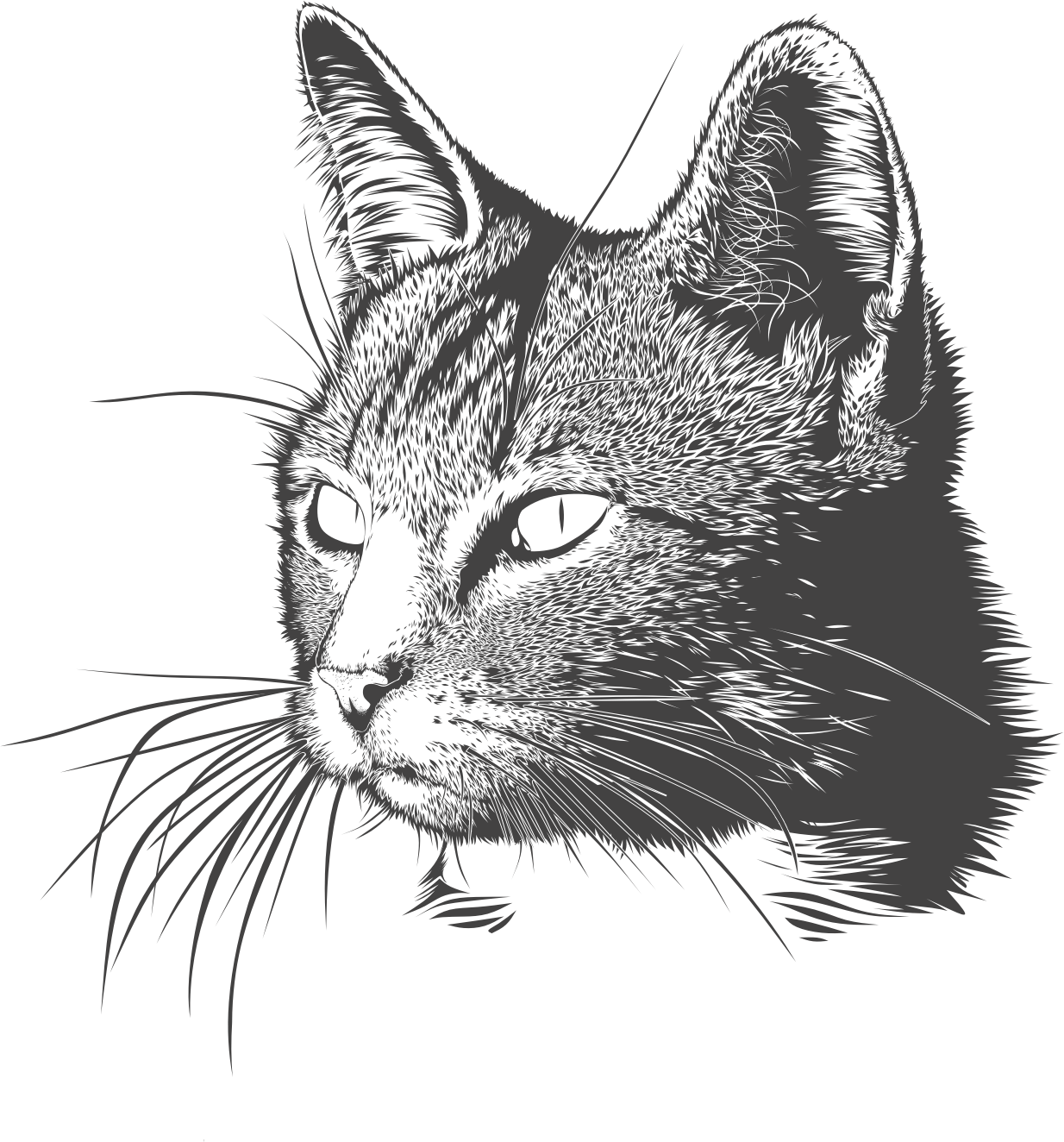High detailled cat's head, black and white