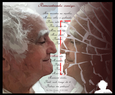 cabeça de idoso, eu no espelho quebrado
