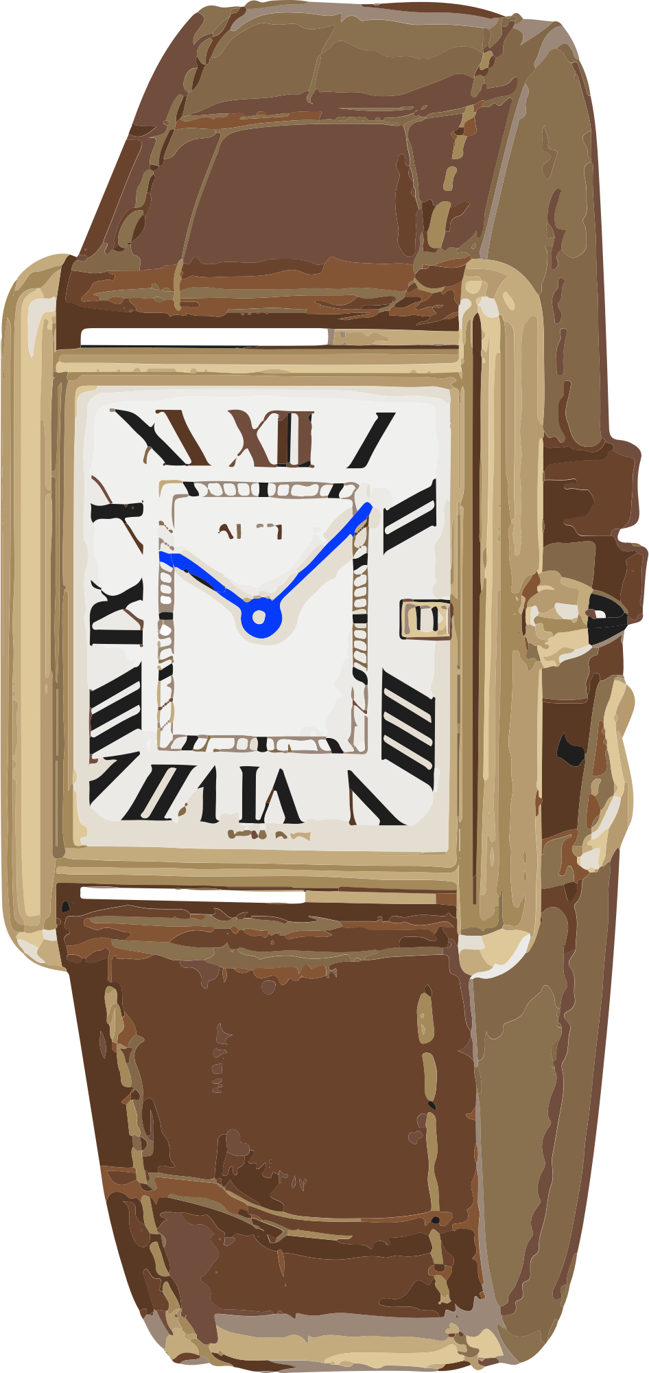 This is a very famous model of ayellow gold swiss watch in a brown croco strap.