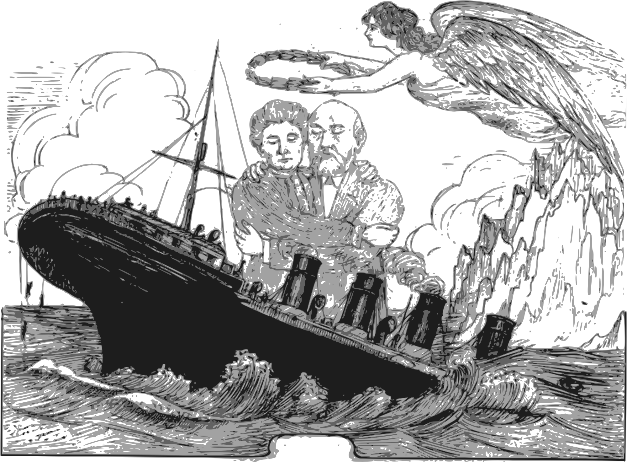 - 1912 angel Atlantic couple death drawing history memory ocean Semi-Realistic People ship sink spouse Titanic tribute