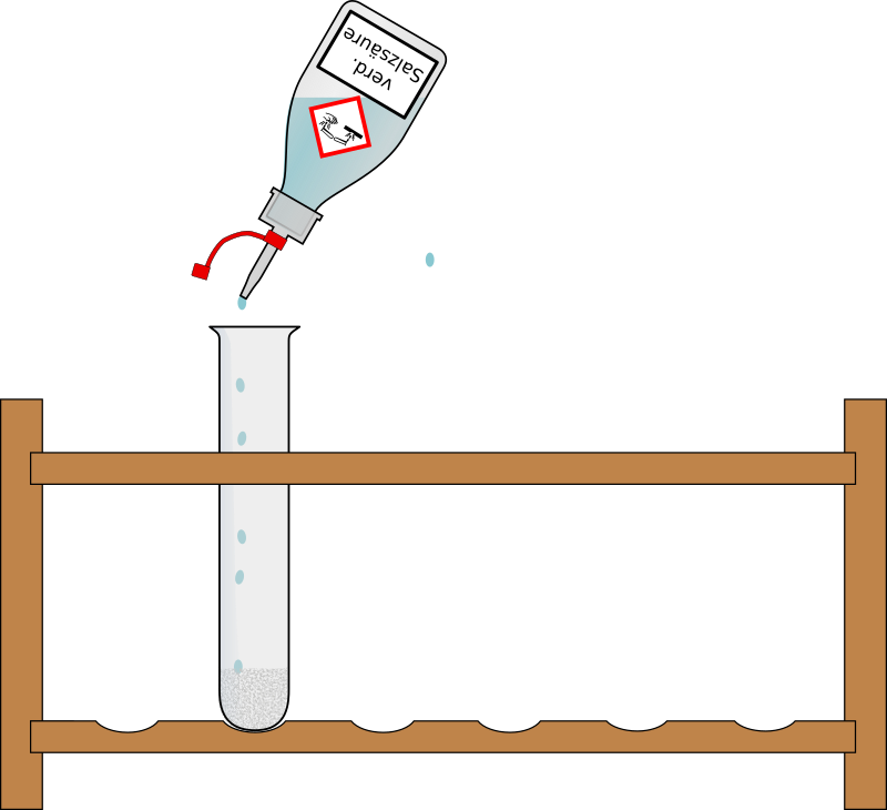 Reaktion eines weißen Stoffes mit Salzsaeure