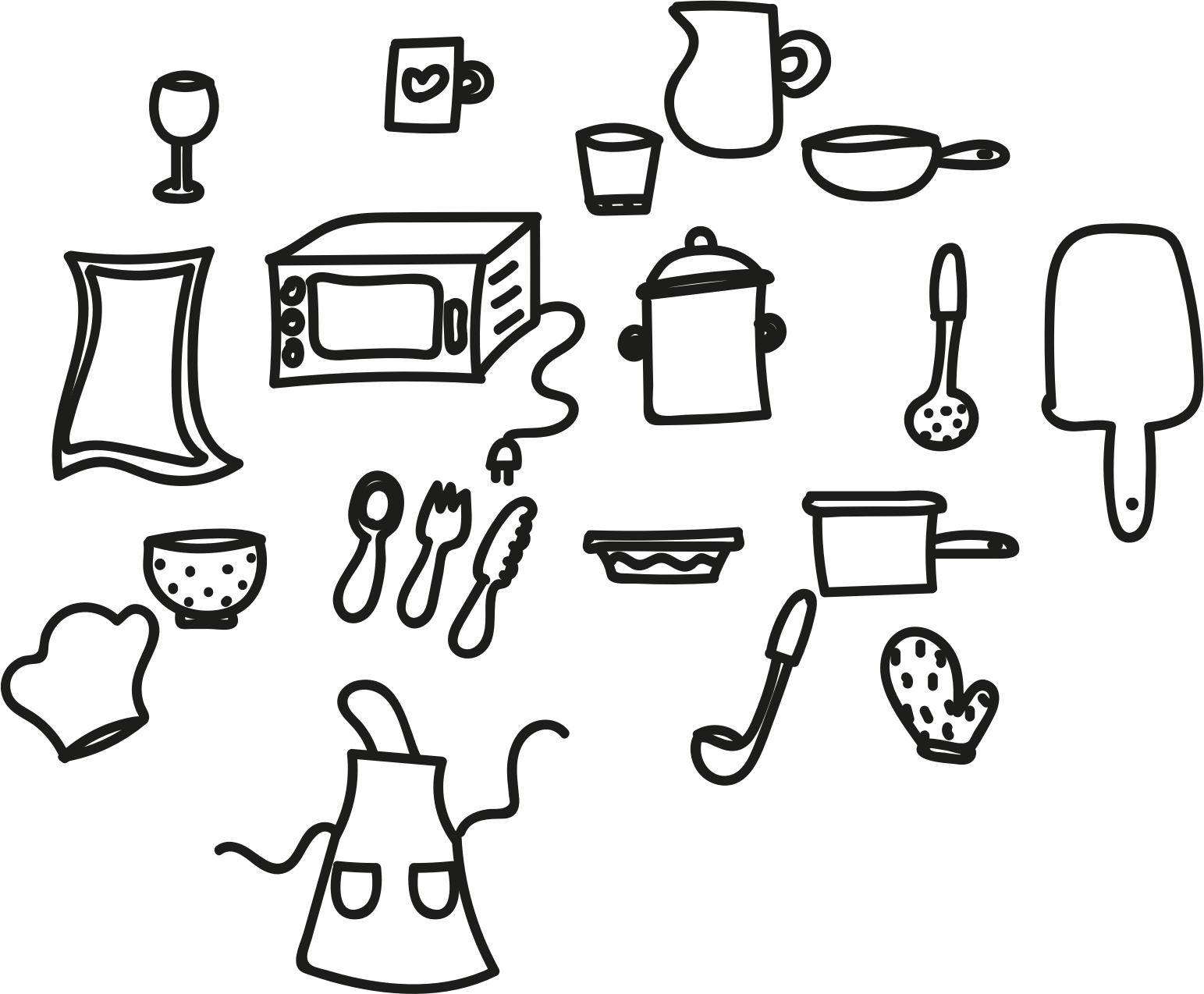 - cooking kitchen item cook hand drawn drawing black white illustration Icons Set