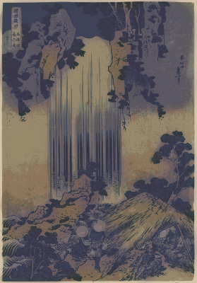 - 1830 1840 falls Hokusai Japan Japanese nature Nichibunken Semi-Realistic People Ukiyo-e waterfall waterfalls wood+block+print