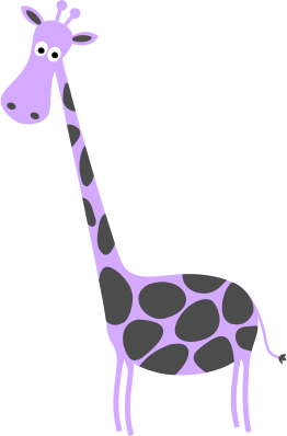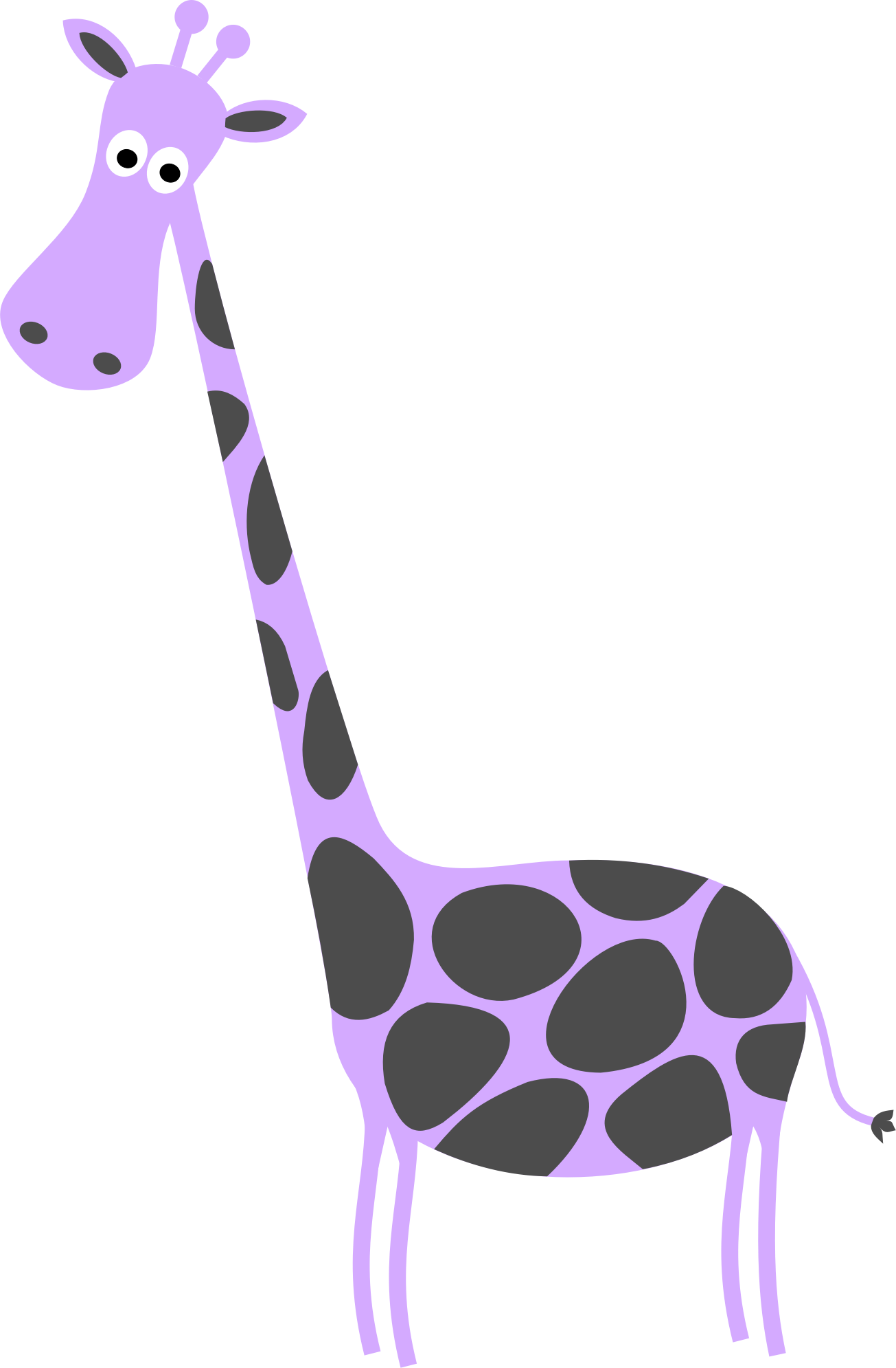 A cute baby giraffe in lavender with dark gray spots. Perfect for decor for a baby girl.