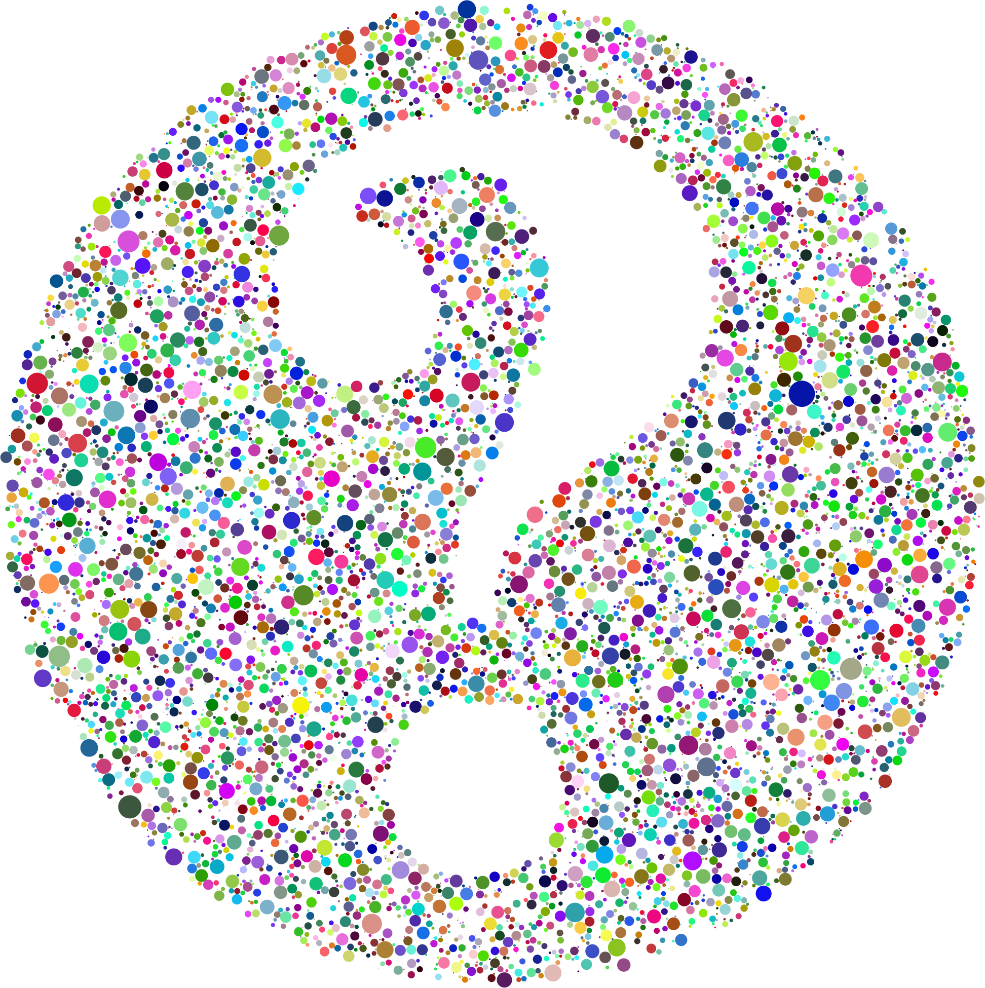 - Question Mark Mind Confusion Contemplate Knowledge Punctuation Text Think Thought Typography Understand Unknown Abstract Art Silhouette Circles Dots Geometric Negative Space Colorful Prismatic Chromatic Rainbow