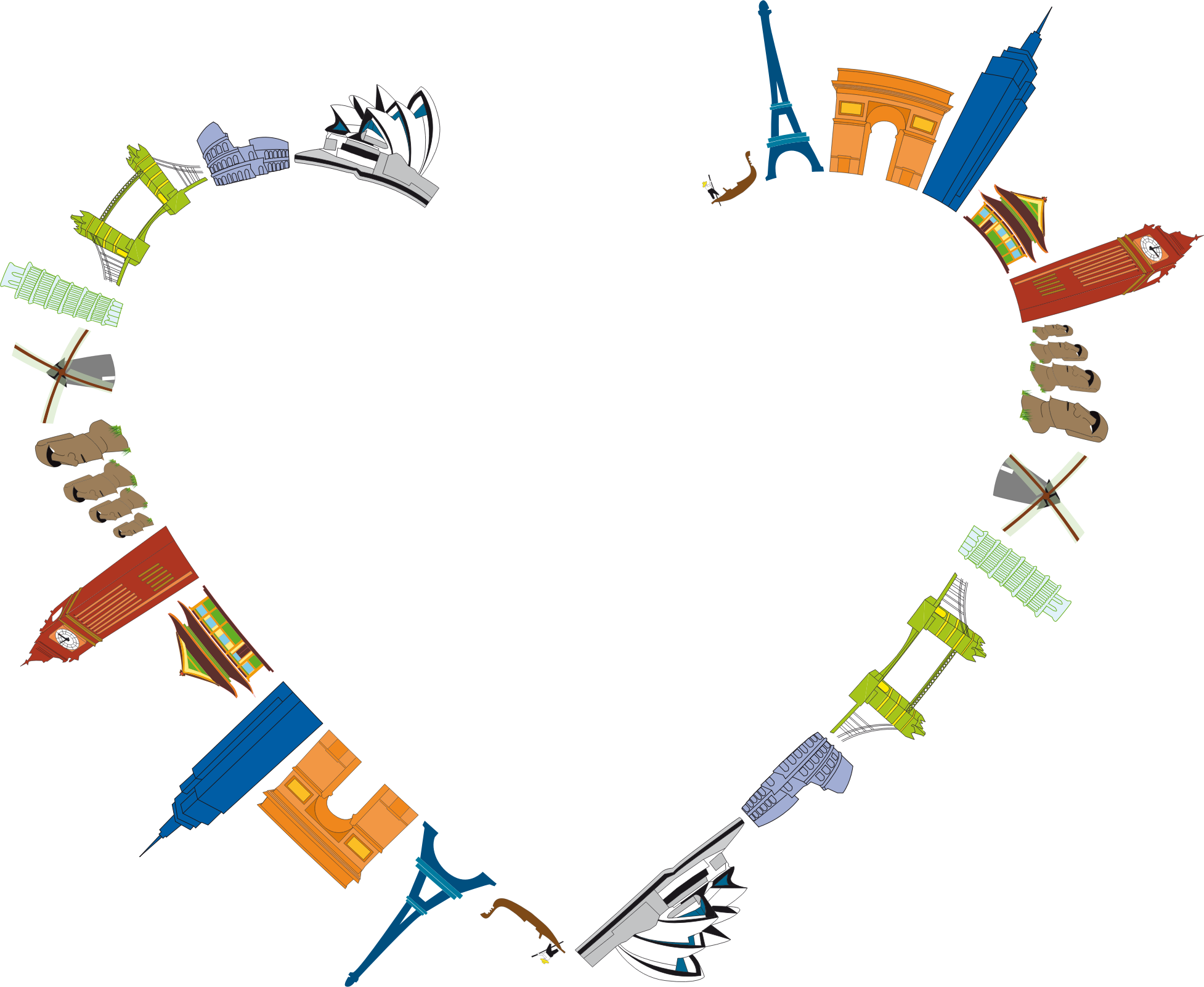 - remix+183441 Easter Island Rome Roman Coliseum Arc De Triomphe Atlanta Eiffel Tower Paris Iles De Paques Monuments Moulin A Vent Pisa Tower Triumphal Arch Windmill Moai Big Ben London Sydney Opera House Australia Venetian Gondola Venice Italy Tower Bridge Asian Chinese House Buildings Architecture Famous World International Historical History Frame Abstract Art Heart Love Romance Passion Valentine