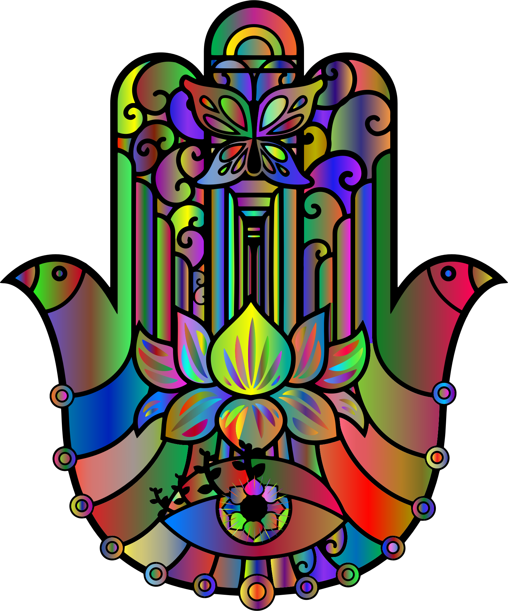 - Hand Of Fatima Fatimah Hamsa Ahimsa Jainism Hand Peace Religious Religion Symbol Evil Eye Talisman Protection Guard Source+Pixabay Colorful Prismatic Chromatic Rainbow