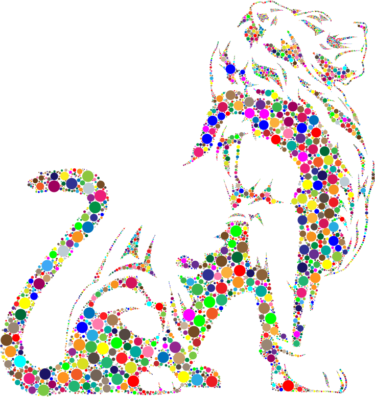 Stylistic Lion Silhouette Circles Prismatic