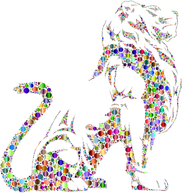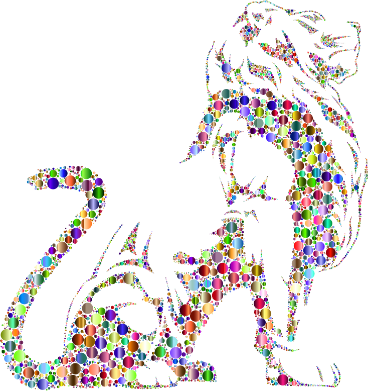 Stylistic Lion Silhouette Circles Chromatic No BG
