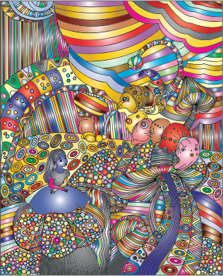 Alice In Wonderland Line Art Prismatic