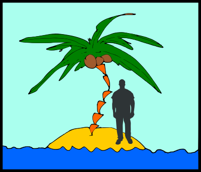 Man on deserted island.
