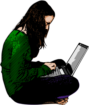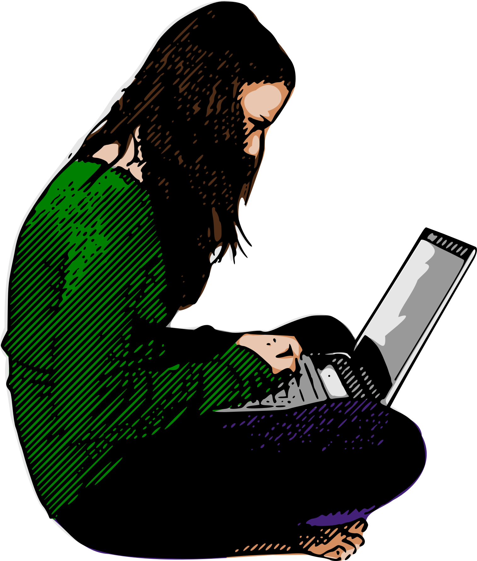 Coloured blogging girl with slightly modernized laptop.