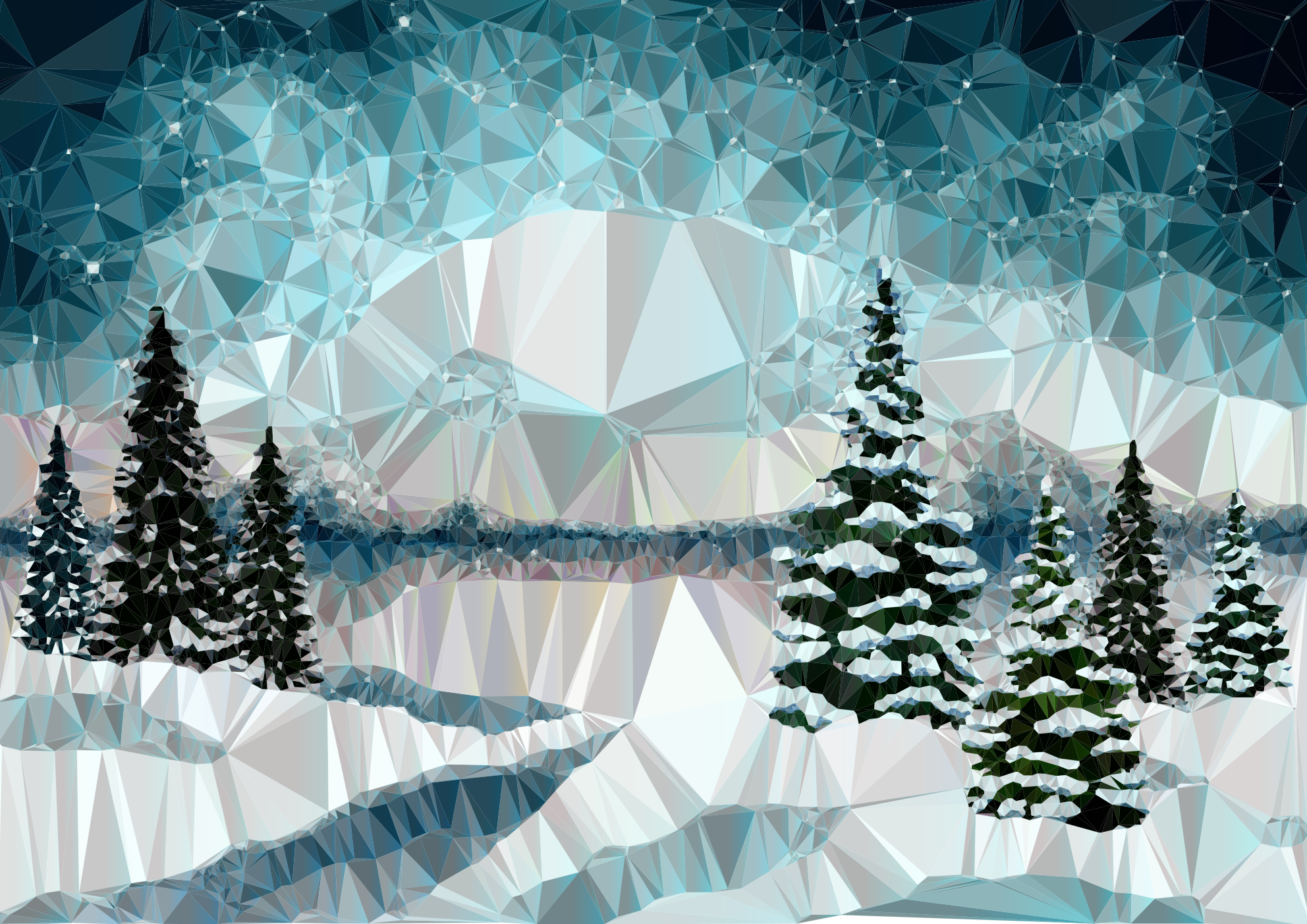 Idyllic Winter Landscape Low Poly derived from https://pixabay.com/en/winter-new-year-christmas-holiday-3830570/
