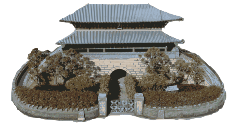 This is to symbolize the famous Namdaemun gate in Seoul, South Korea. It doesn't currently quite look like this though... (Based on a public domain image offered by Jiang Dong-Qin.)