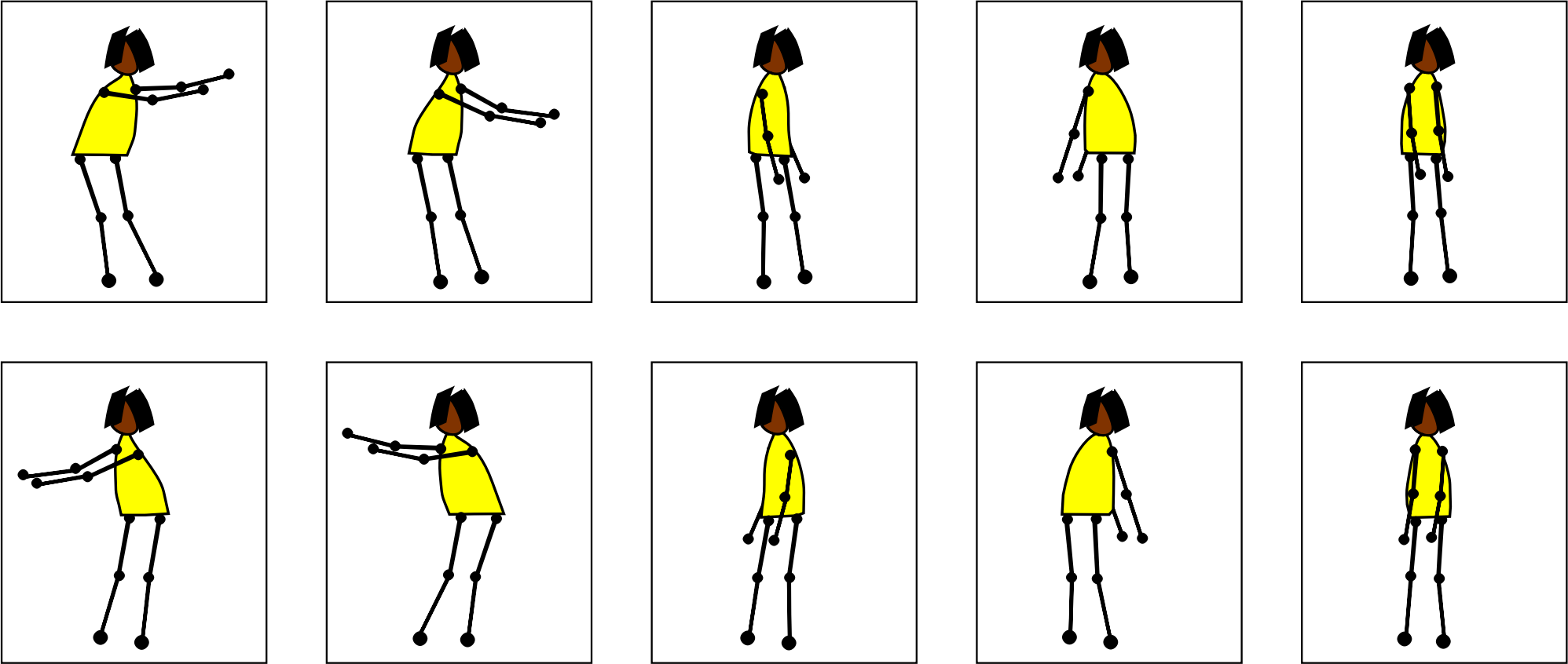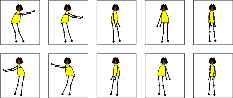 Javascript performs the animation by changing the viewBox attribute to display the appropriate frame