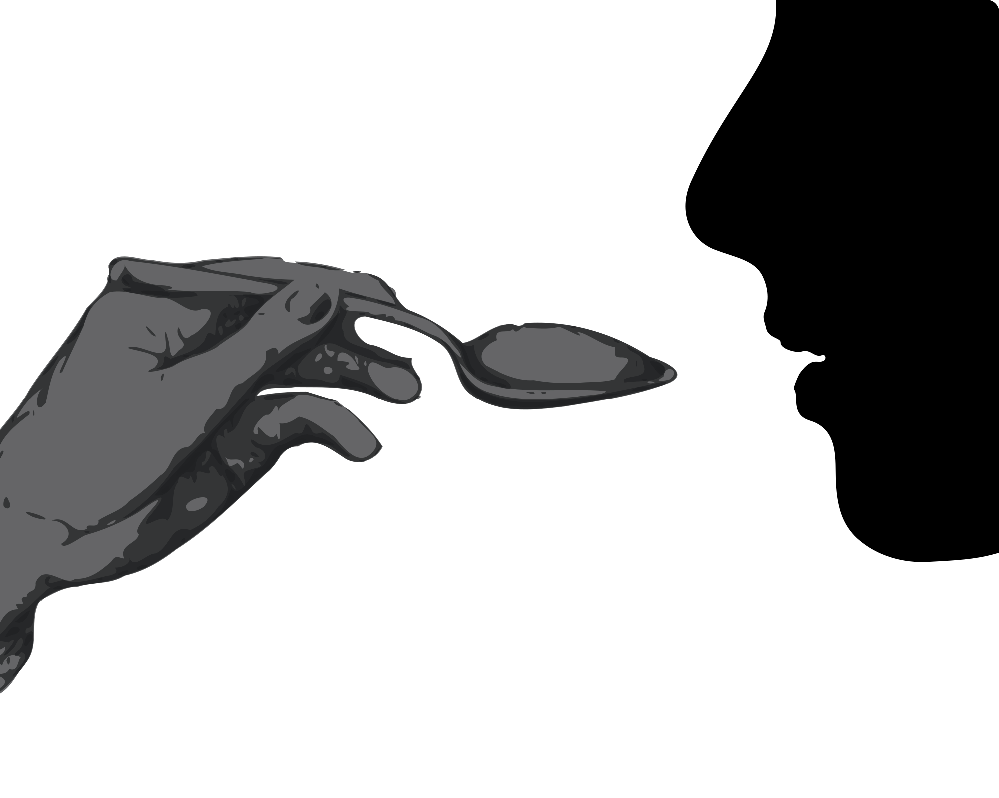 A remix of "Female Profile Silhouette 3" (GDJ) and "Hand holding a spoon" (zeimusu) to illustrate the idea of feeding.