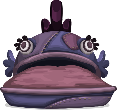 A bed in the shape of a big purple fish. From Glitch - glitchthegame.com
