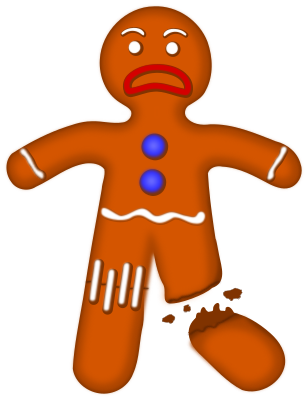 Uh oh. Did someone snap off his foot? In anycase, that's a sad gingerbread man!
