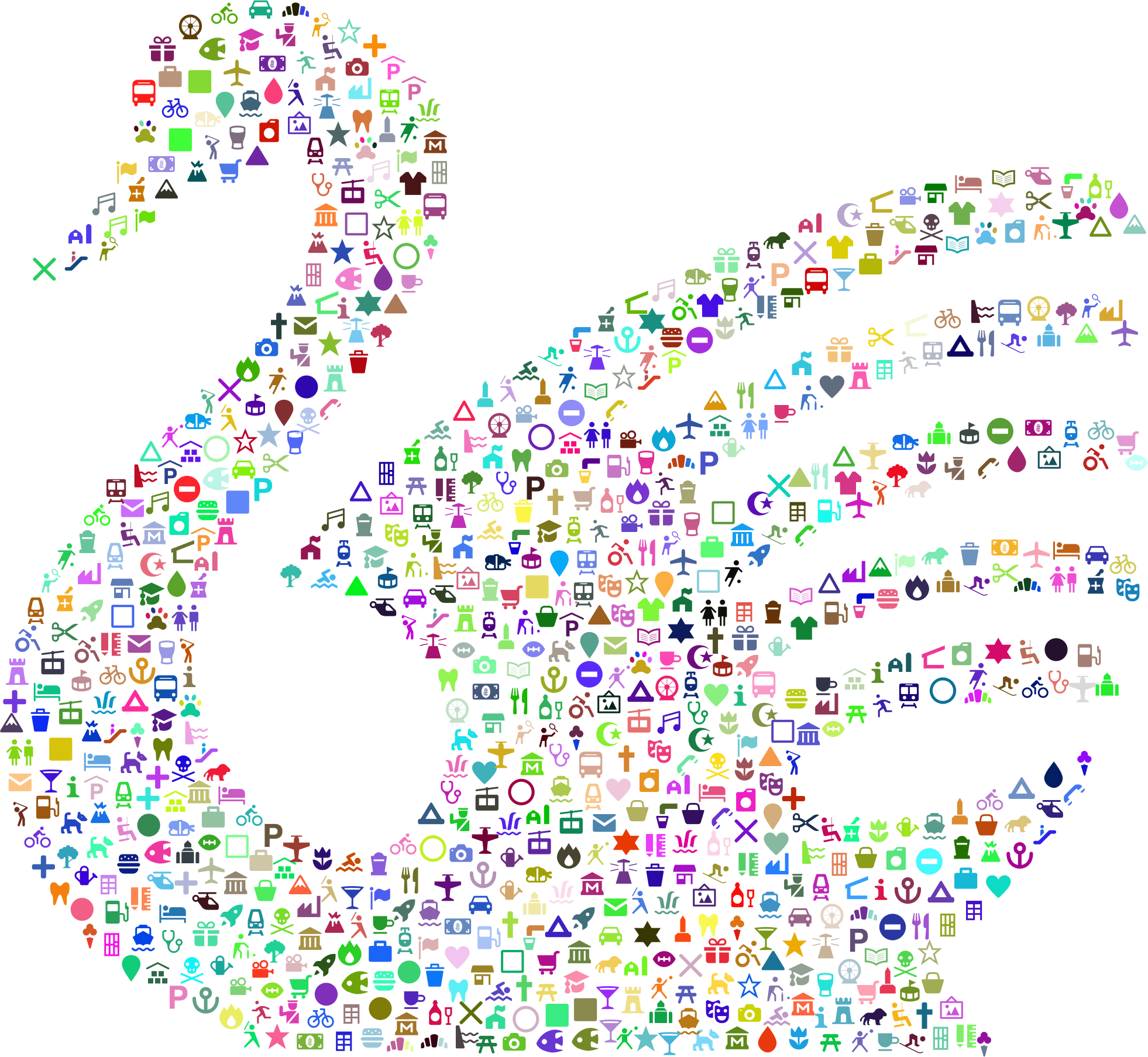 - remix+312157 remix+243821 remix+311225 Animal Aquatic Bird Flight Fly Silhouette Stylized Swan Swim Water Icons Set Collection Symbols Abstract Art Colorful Prismatic Chromatic Rainbow