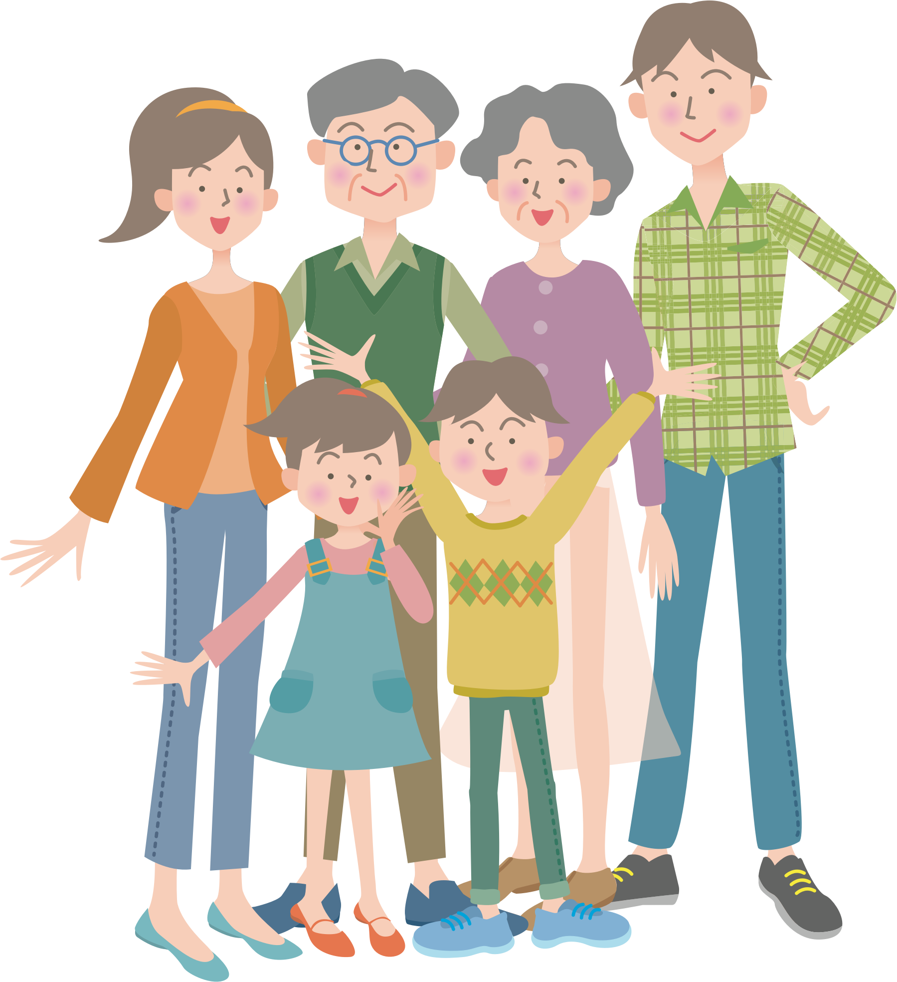 - boy children Comic characters dad daughter enthused family father generations girl granddad granddaughter grandfather grandma grandmother grandparents grandson happy mom mother multigenerational parents son