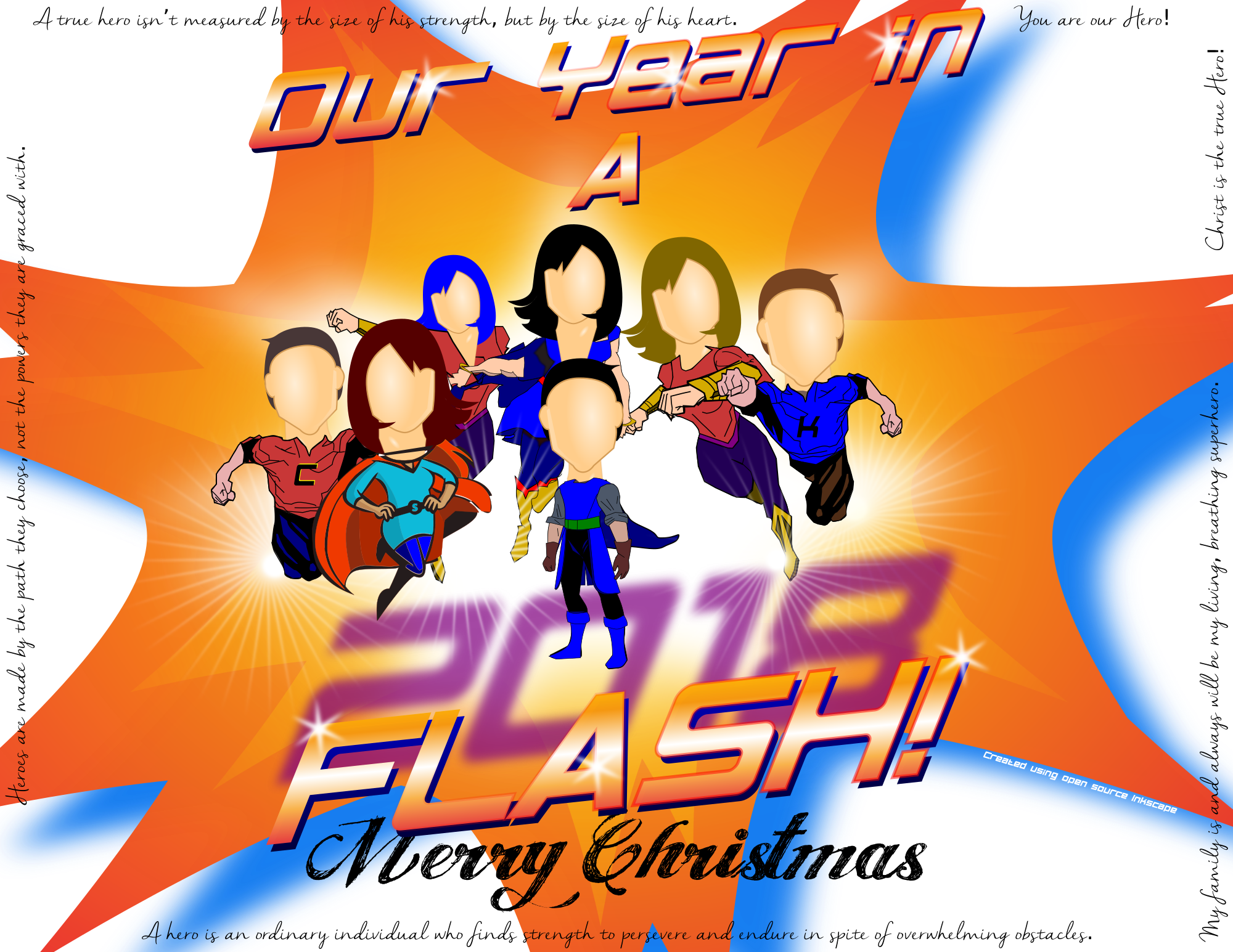 Was used as a Christmas newsletter for 2018. It originally had my families faces, but I substituted it for clipart faces.