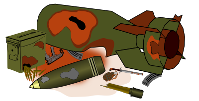 Contents of some weapon cache with weapons and ammunition - now rusty and broken but still possibly dangerous for anyone who finds it.