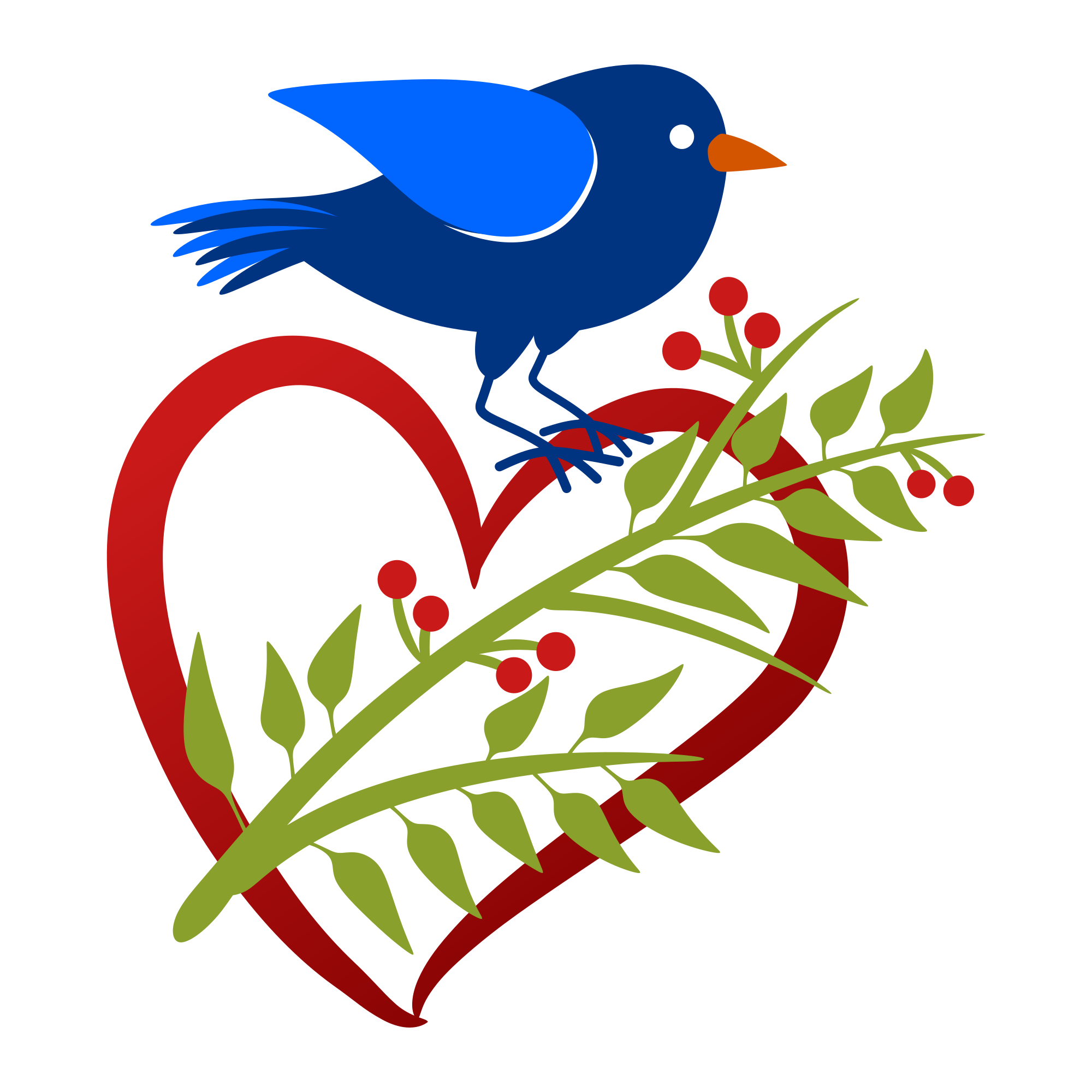 Bird on branch, isolated on transparent background.