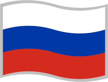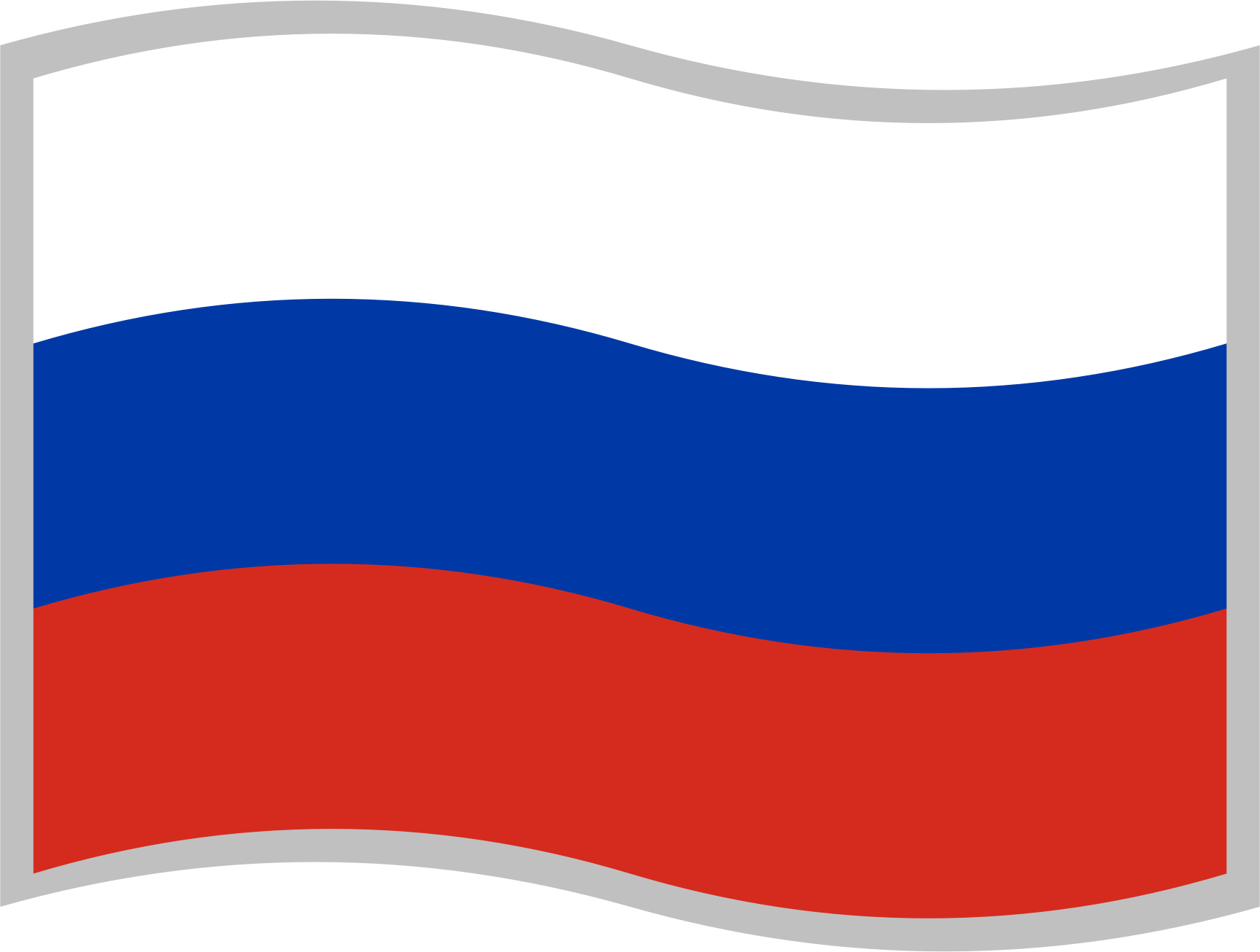 Flag of the Russian Federation; slightly curved to suggest waving in the wind; with a grey border for use on a background similar to one of the flag's colours; can represent the Russian Federation or the Russian language.