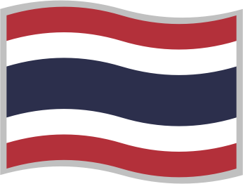 Flag of the Kingdom of Thailand; slightly curved to suggest waving in the wind; with a grey border for use on a background similar to one of the flag's colours; can represent the Kingdom of Thailand or the Thai language.