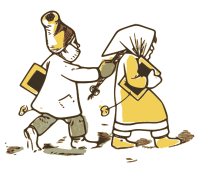 - 1920 boy bully children cold Comic characters girl hair kids Lothar Meggendorfer pony+tail ponytail pull retro school siblings tease teasing tug vintage walk walking winter
