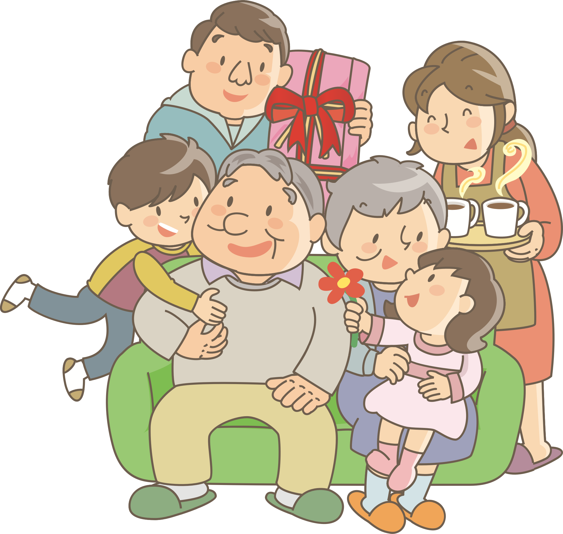 - boy children Comic characters dad daughter enthused family father generations girl granddad granddaughter grandfather grandma grandmother grandparents grandson happy mom mother multigenerational parents son