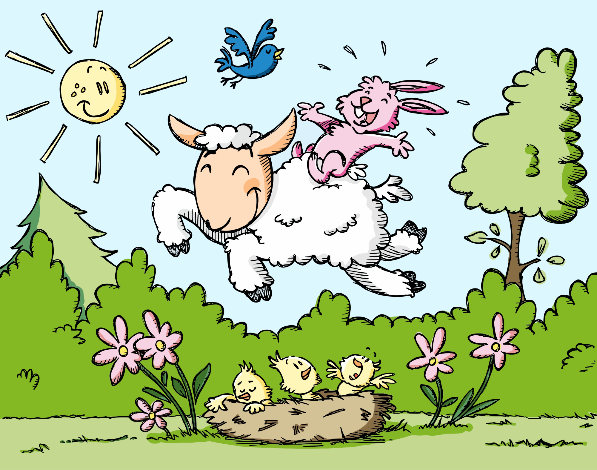- Animals Anthropomorphic Anthropomorphized Animals Birds Bunny Cartoon Coloring Comic Lamb Landscape Line Art Rabbit Sheep Source+Pixabay Spring