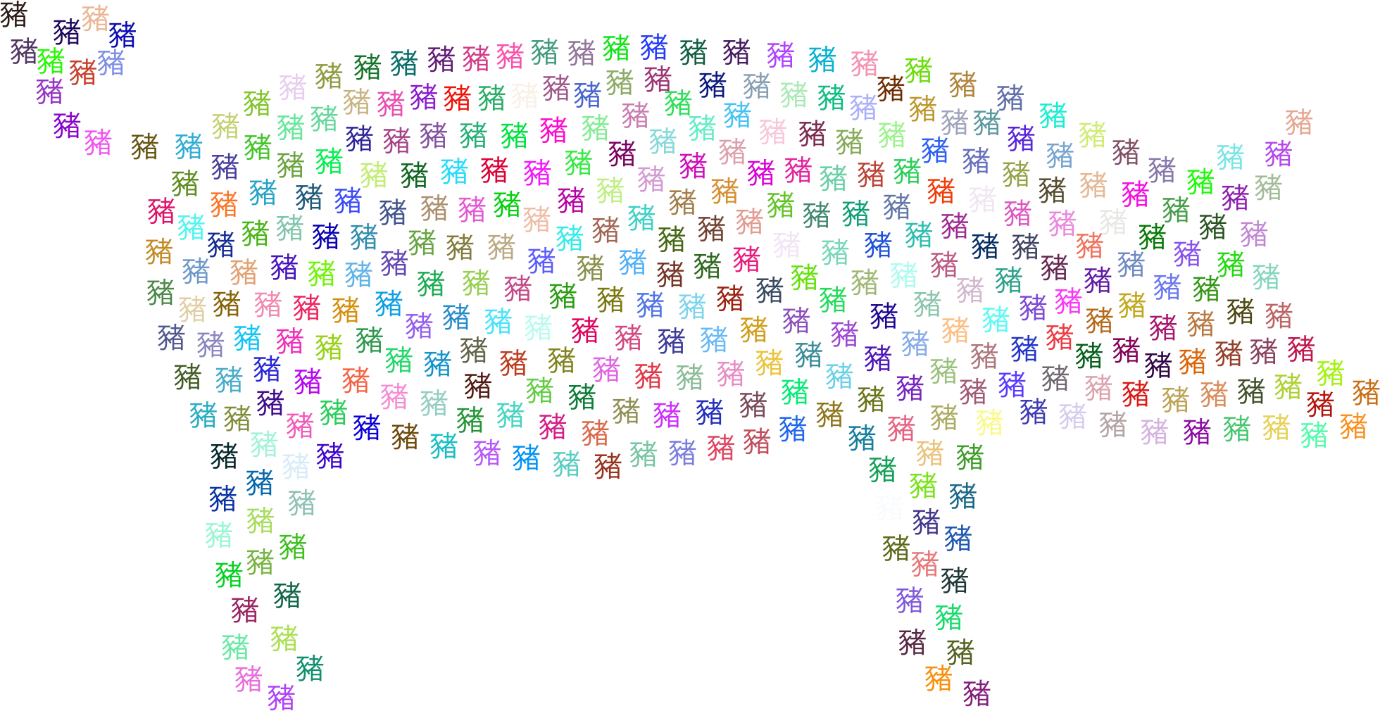 - remix+314293 remix+314302 Pig Animal Porker Hog Livestock Barnyard Pork Oinker Porky Silhouette Asian Calendar China Chinese New Year Text Time Typography Words Year Zodiac Alphabet Calligraphy Symbol Cantonese Han Symbol Abstract Art Colorful Prismatic Chromatic Rainbow