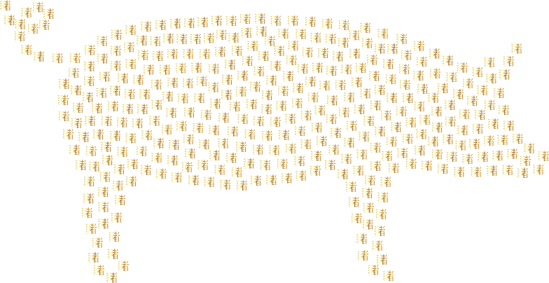 - remix+314293 remix+314302 Pig Animal Porker Hog Livestock Barnyard Pork Oinker Porky Silhouette Asian Calendar China Chinese New Year Text Time Typography Words Year Zodiac Alphabet Calligraphy Symbol Cantonese Han Symbol Abstract Art Gold Shiny Metallic