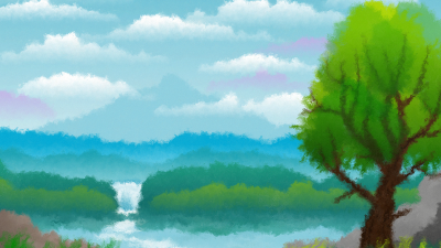 Landscape image with additional filters to add a painted appearance over a grainy paper. Current thumbnail image may look off as it is using an outdated rendering method. Try a current version of inkscape if you are in need of a rasterized version.