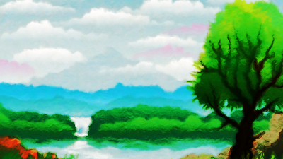 Landscape image with additional filters to add a painted appearance over a grainy paper. Current thumbnail image may look off as it is using an outdated rendering method. Try a current version of inkscape if you are in need of a rasterized version.